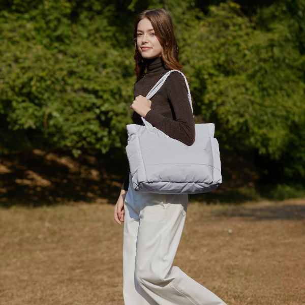Stylish Puffer Tote Bag For Women, Spacious Handbag For School, Travel & Commuting light Grey