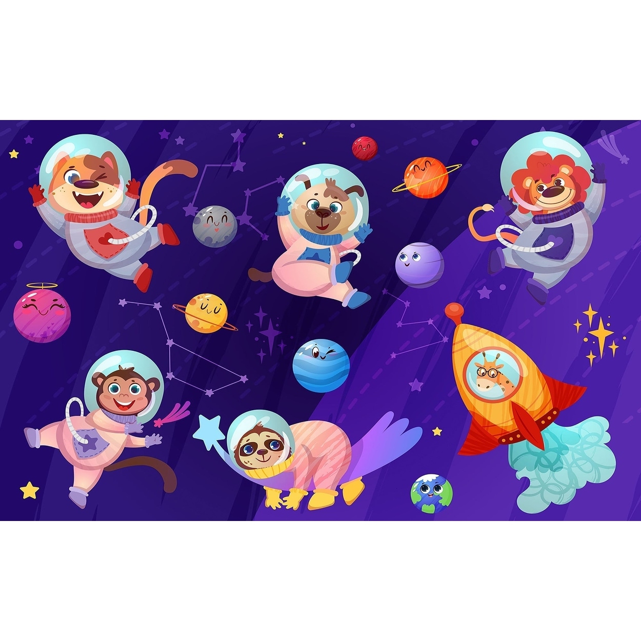 Premium Peel & Stick Wall Mural - Space Animals Adventure