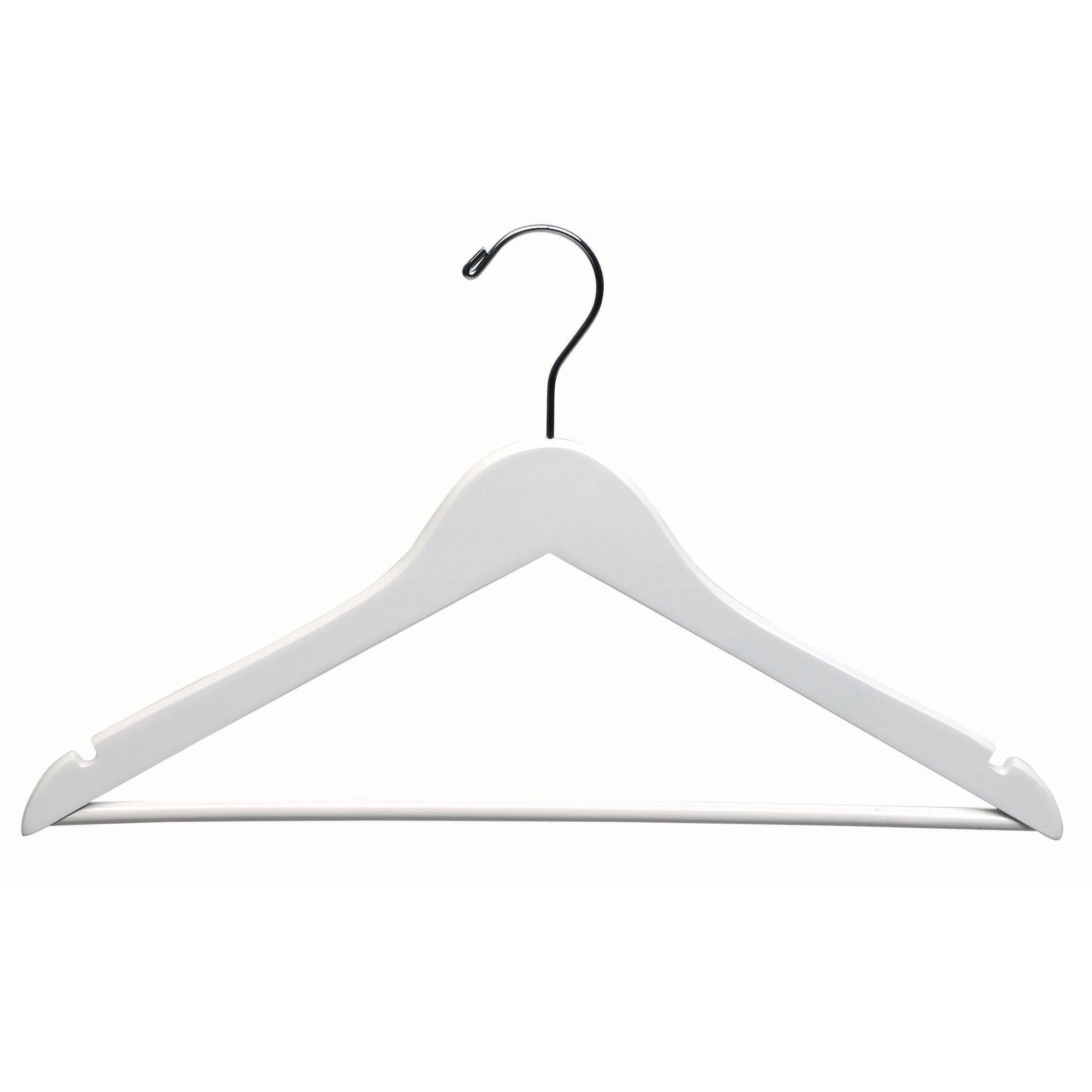White Wooden Suit Hanger with Bar and Chrome Swivel Hook