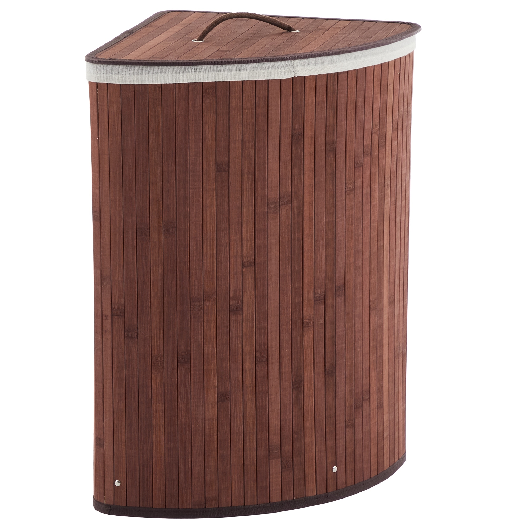Bamboo Laundry Hamper Large 58L with Removable 3-Section Liner, Foldable Storage Basket with Lid and Handles