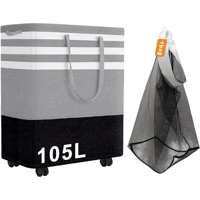 80L/105L Large Laundry Basket, Laundry Hamper w/ 4 Wheels, Collapsible Waterproof Clothes Basket, Freestanding Hamper w/ Handles