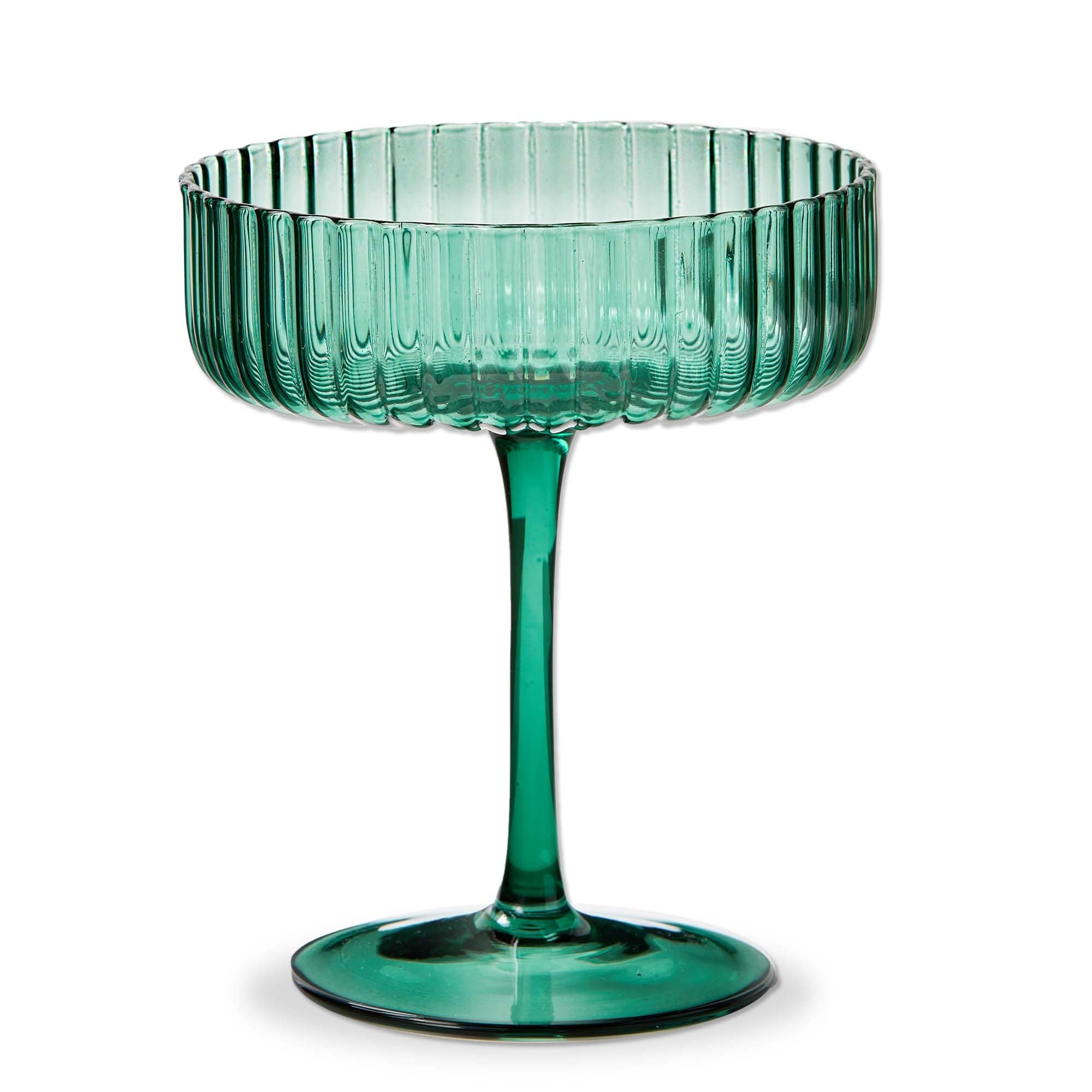 Gramercy Fluted Coupe Glass - Spruce Green Drinkware, 8oz Capacity, Hand Wash Only, Perfect for Christmas Celebrations