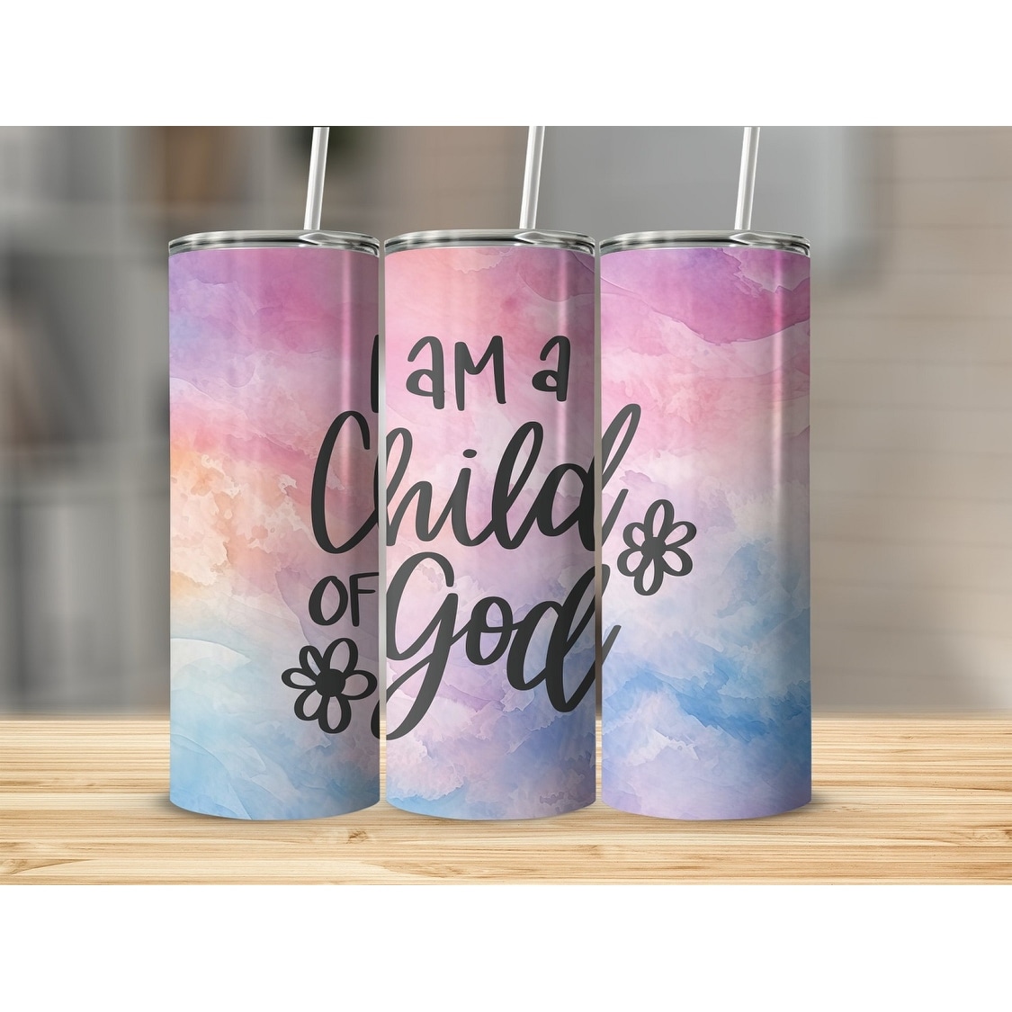 I Am A Child of God Inspirational 20 Oz Skinny Metal Tumbler w/Lid and Straw - Multi