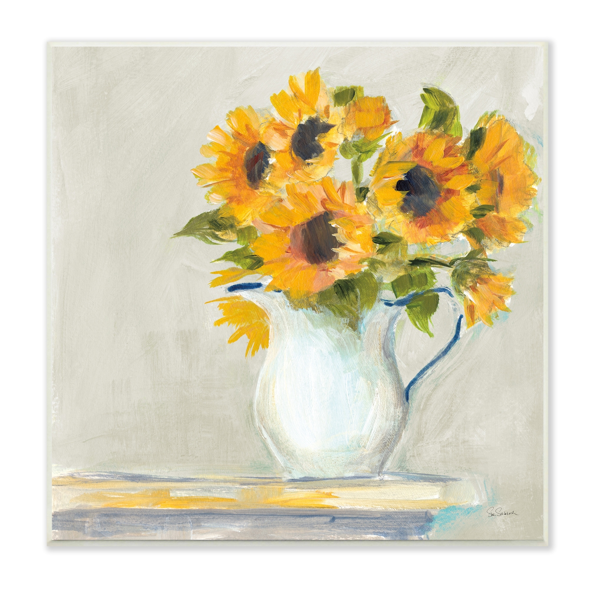 Stupell Soft Petal Sunflower Vase Country Milk Jar Wood Wall Art
