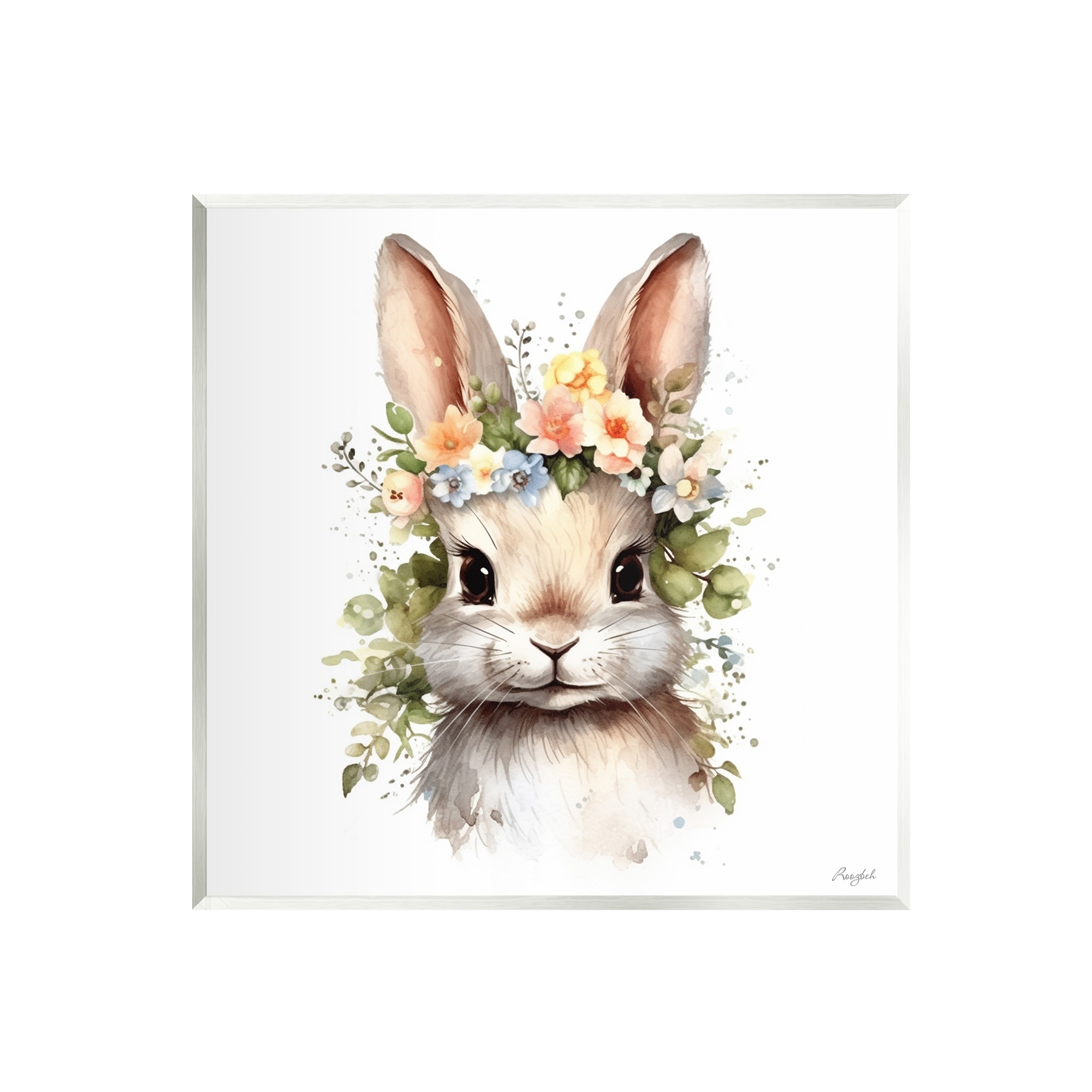 Stupell Flower Garland Bunny Wall Plaque Art Roozbeh