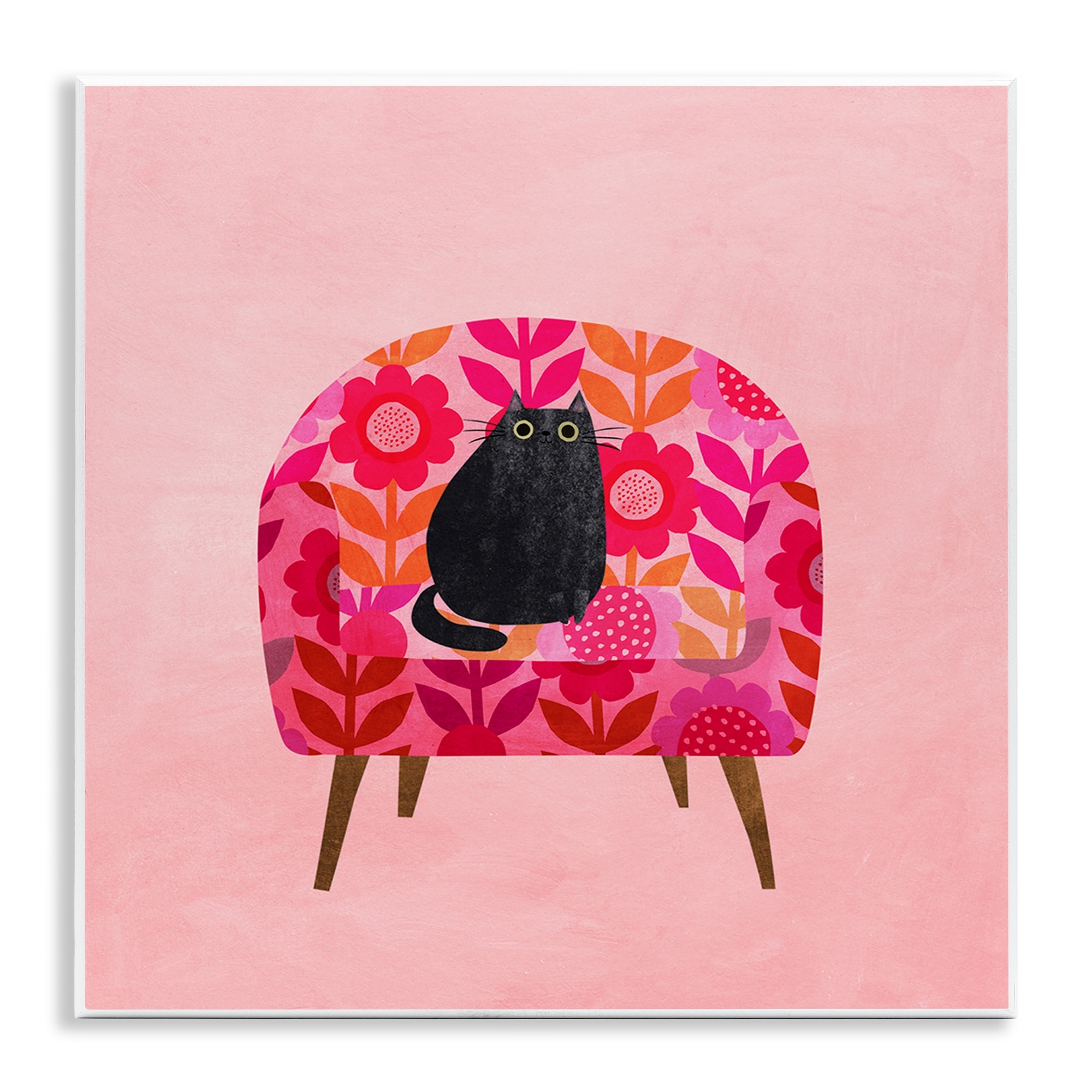 Stupell Cat on Retro Floral Chair Wall Plaque Art Design by Angie Rozelaar