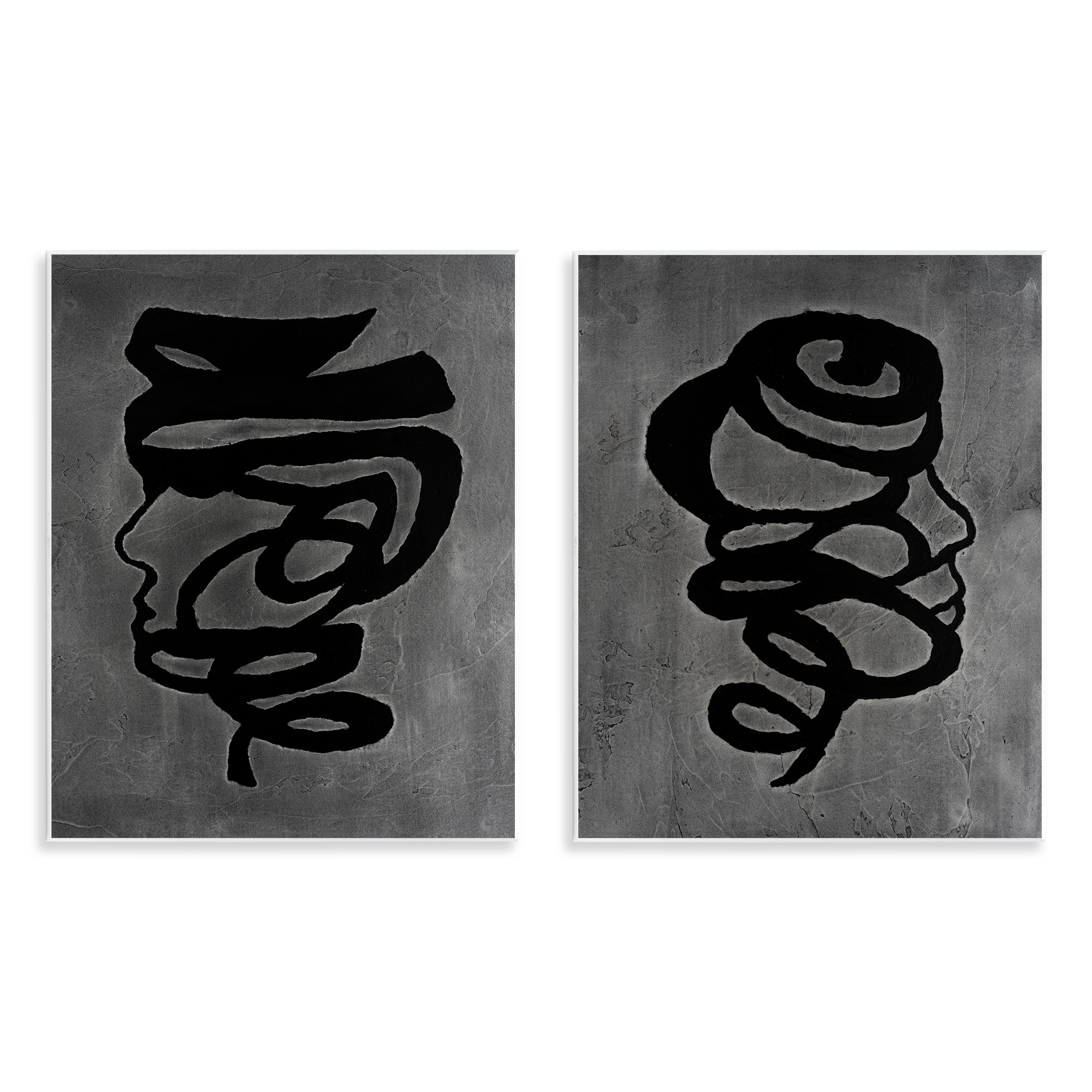 Stupell Coil Portraits on Grey Wall Plaque Art Design By Vanna Lam (Set of 2)