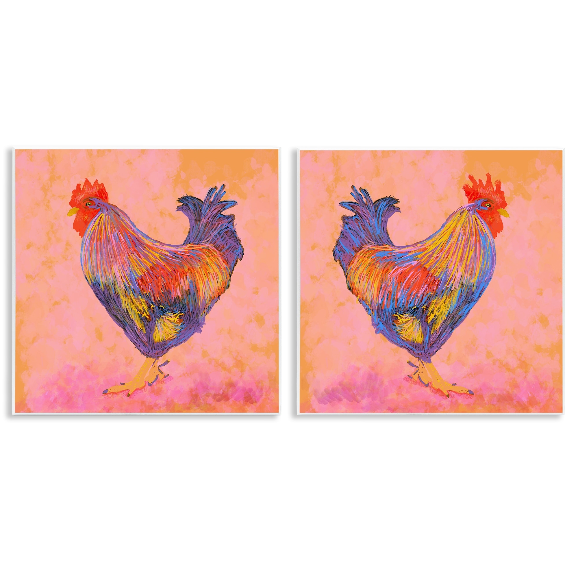 Stupell Rooster with Warm Hues Wall Plaque Art Design By Dina Riddle (Set of 2)