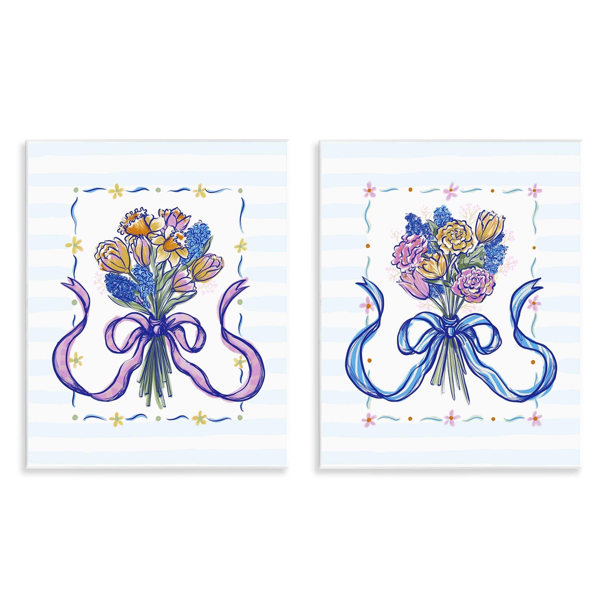 Stupell Ribboned Spring Flower Bundle Wall Plaque Design by Connie Summers (Set of 2)