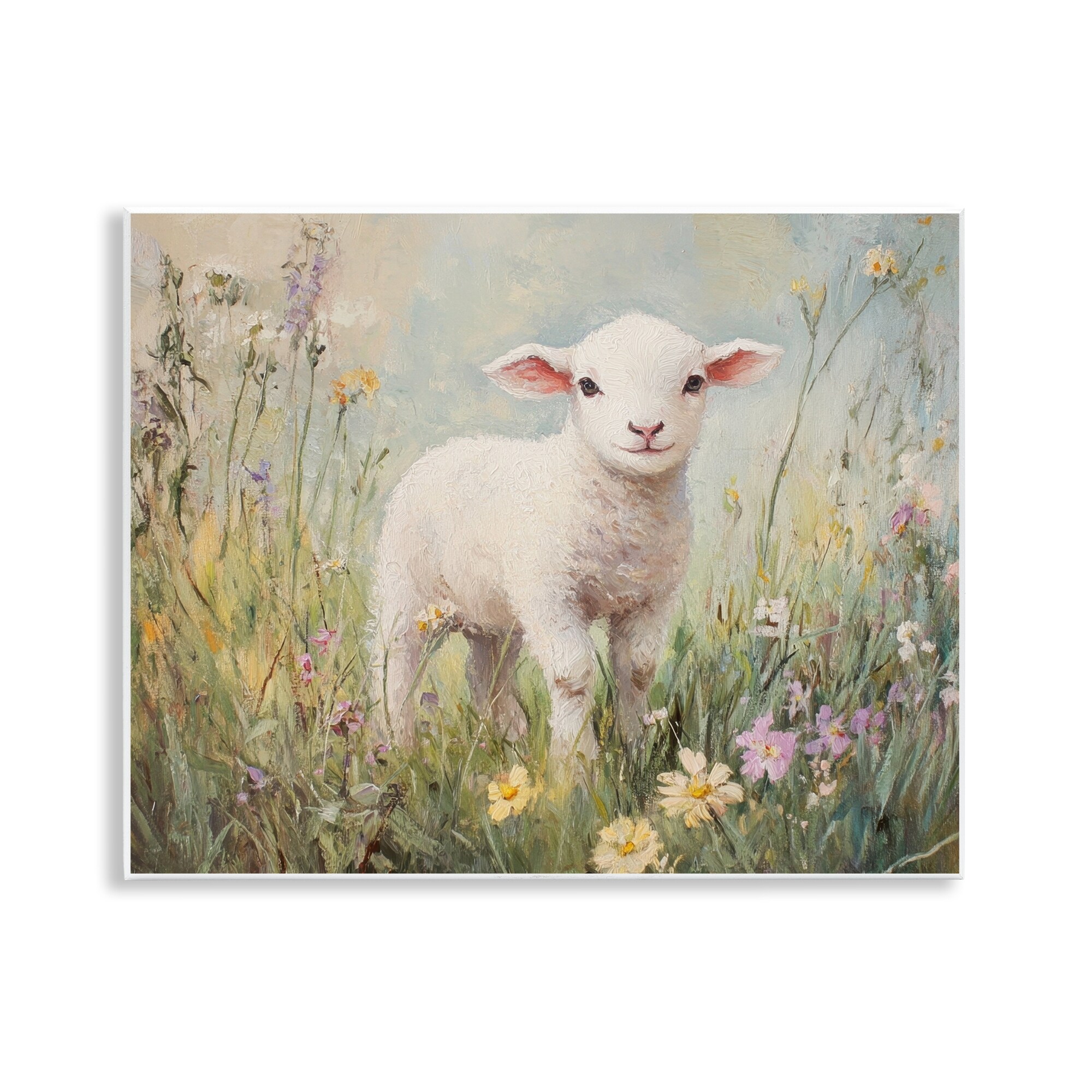 Stupell White Lamb in Soft Flowers Wall Plaque Design by Petal Prints Design