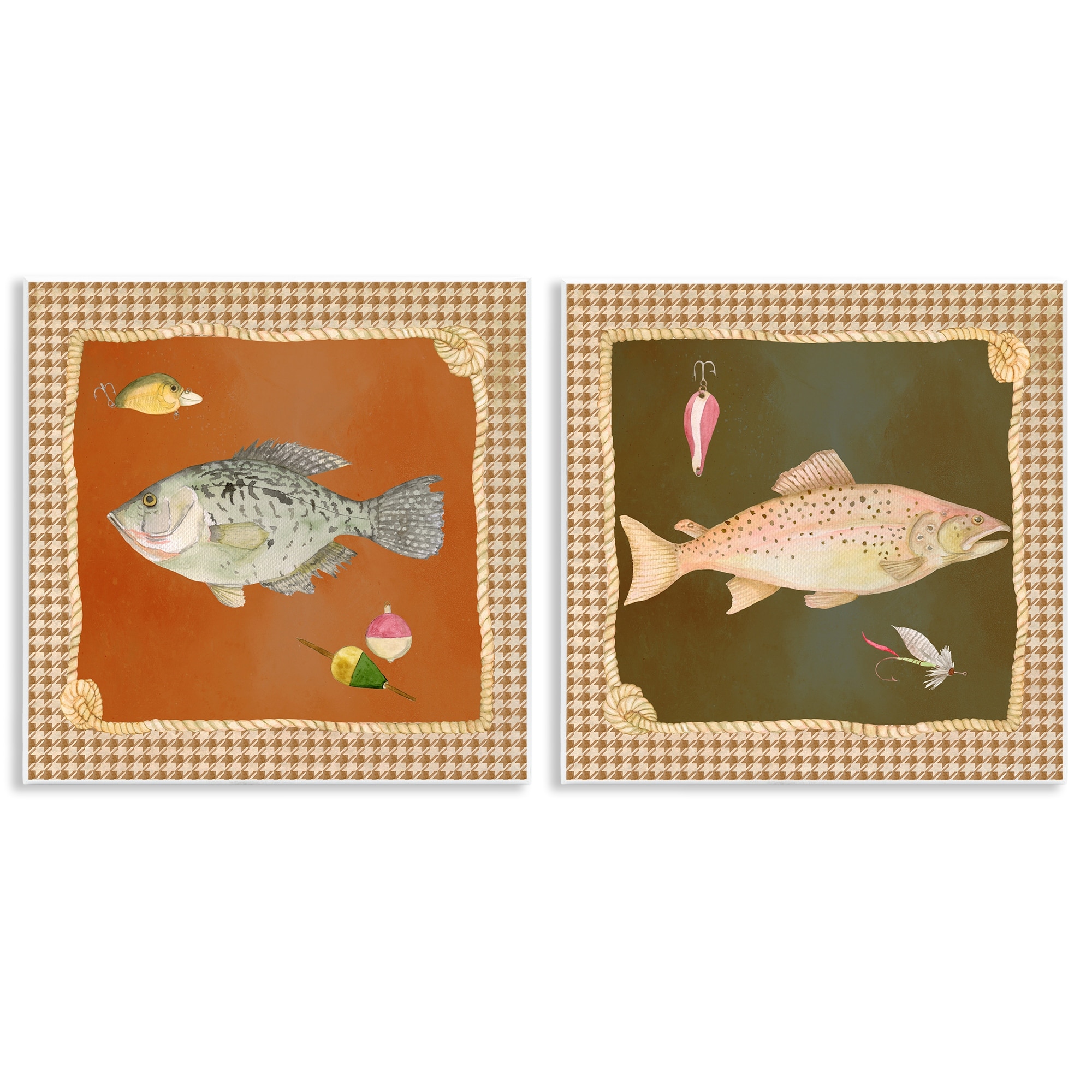Stupell Fish & Lures over Houndstooth Wall Plaque Art Design By Lee Ann Sanders (Set of 2)