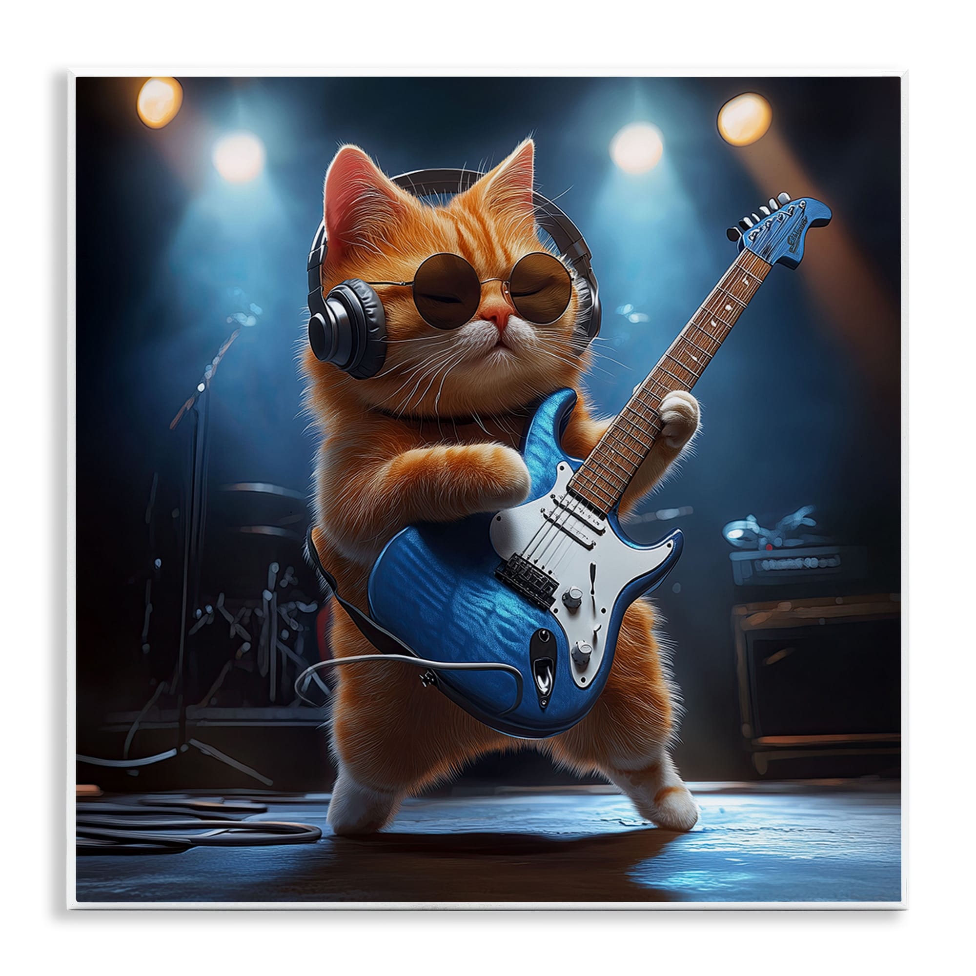 Stupell Cat Guitarist in Band Wall Plaque Design by Jim Baldwin