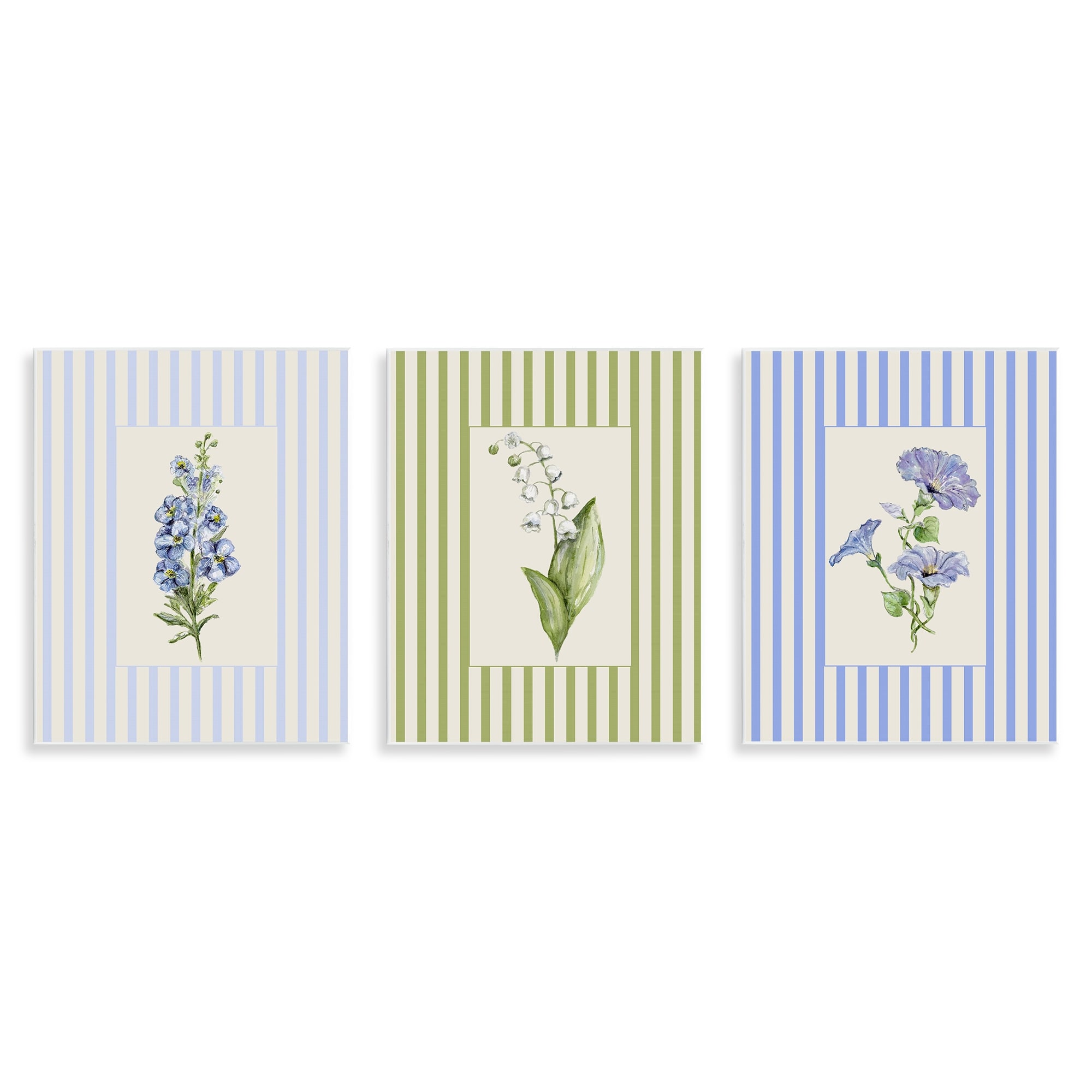 Stupell Soft Stripe Cottage Blooms Wall Plaque Design by Lisa Wehmeyer (Set of 3)
