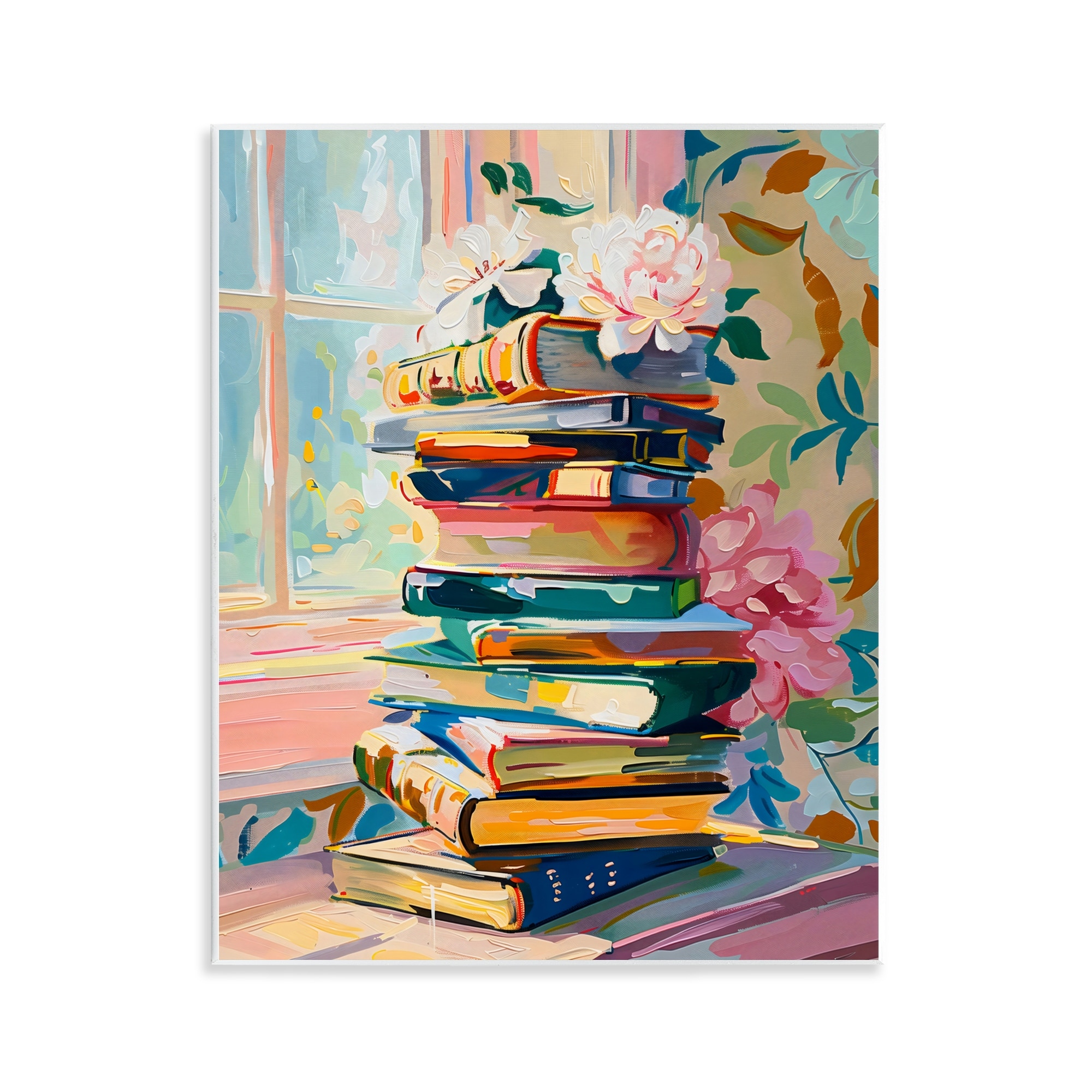 Stupell Vivid Bookstack by Window Wall Plaque Art Design By Arlington Prints