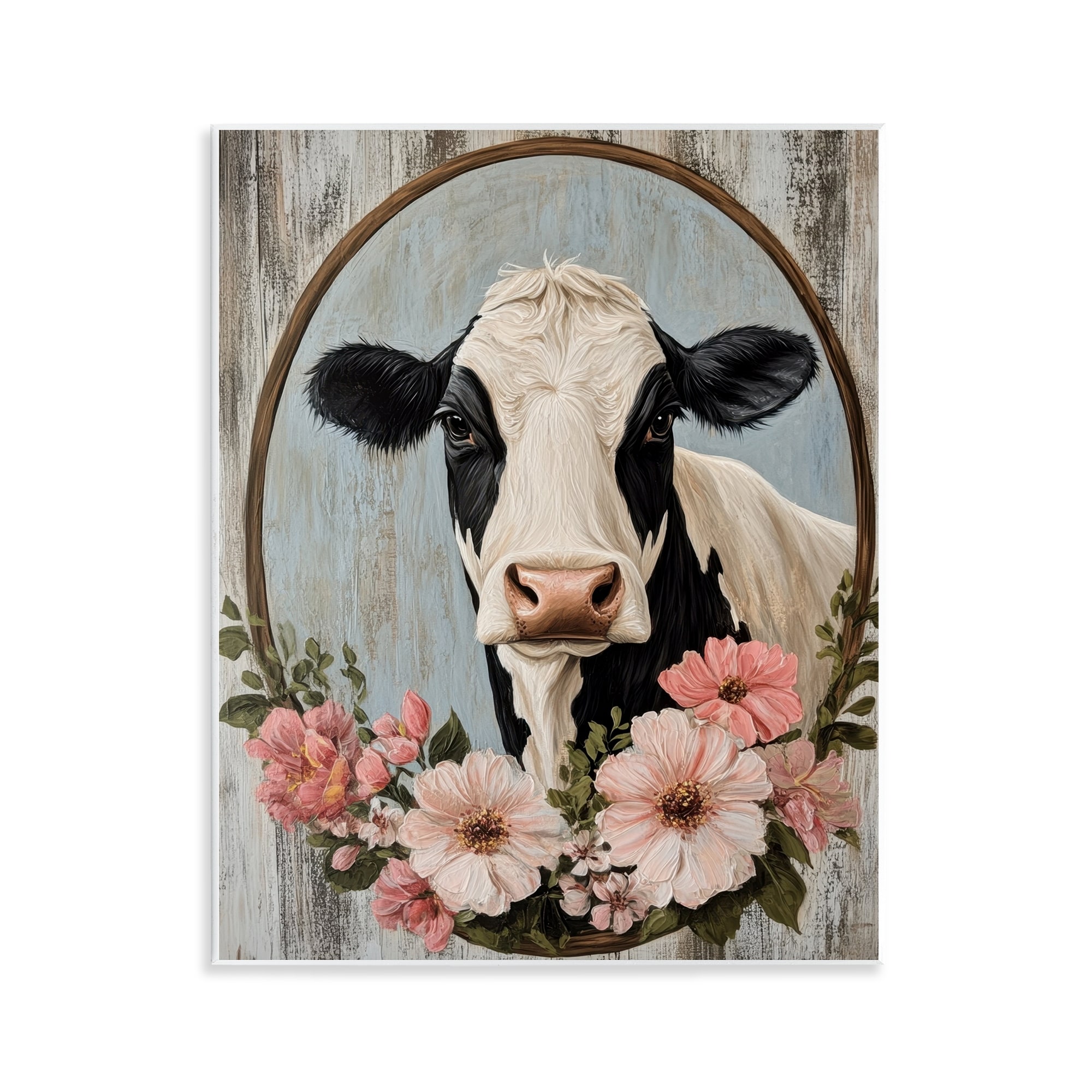 Stupell Pretty Floral Cow Portrait Wall Plaque Art Design By Petal Prints Design