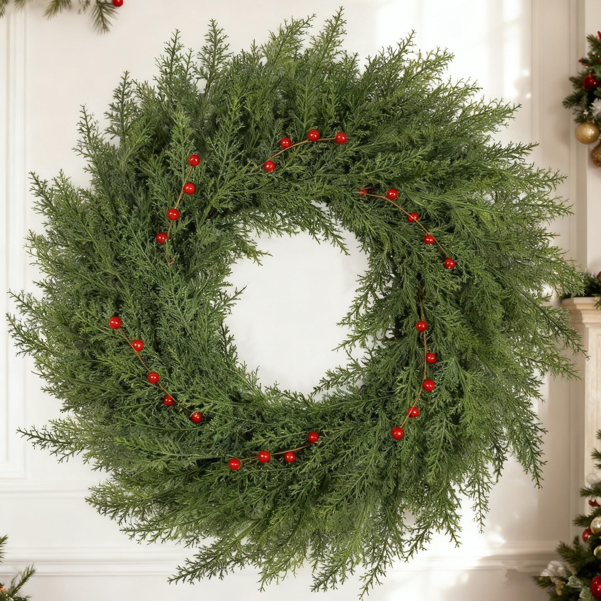 24" Artificial Christmas Wreaths Xmas Pine Wreath Garland