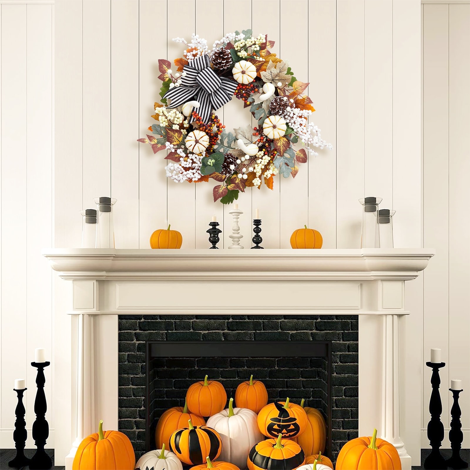 20" Fall Wreath Autumn Pumpkin Maple Leaves Garland Thanksgiving Harvest Decor