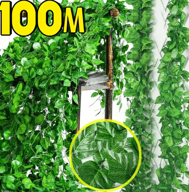 Lush Artificial Ivy Vine Garland (2M, 100 Leaves) Realistic Hanging Greenery Decor watermelon 4m (2 String)