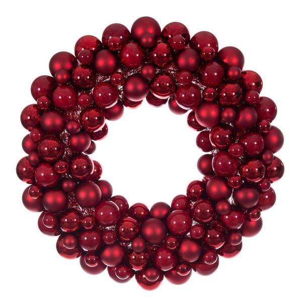 Vickerman 787236 - 28" Red Matte Shiny Pearl Ball Wreath UV (N250903UV) Christmas Wreath Ornament