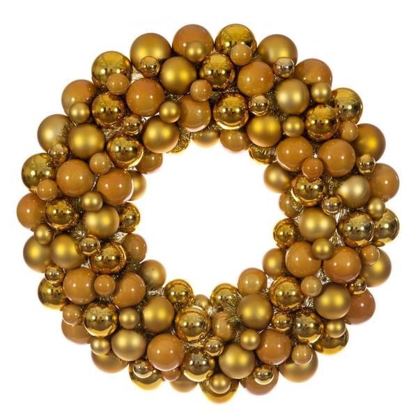 Vickerman 787250 - 28" Gold Matt Shiny Pearl Ball Wreath UV (N250908UV) Christmas Wreath Ornament