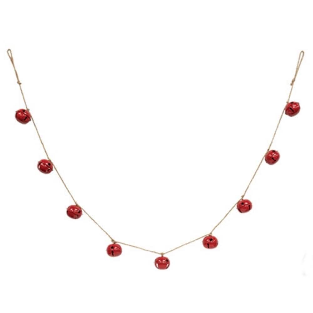 Red Metal Jingle Bell Garland 60” Long with Star Cutout Bells for Christmas Tree Decor