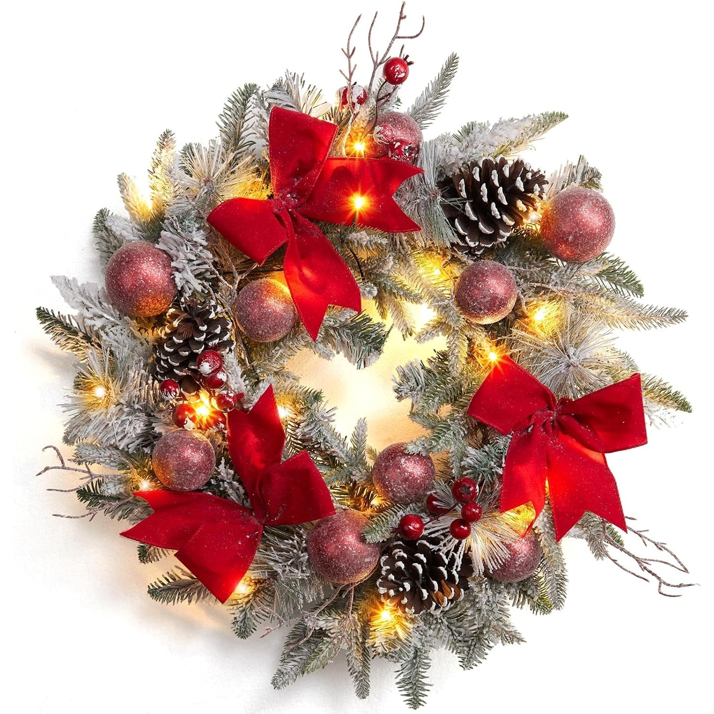 GIMMYFIVE Christmas Wreath with Lights, 24in Xmas Wreath for Front Door