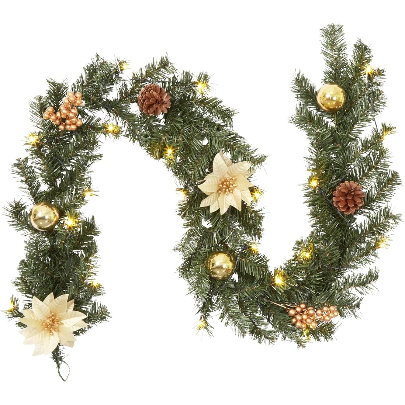 6 ft Christmas Garland with Lights, Prelit Xmas Garlands for Mantle Fireplace Stair Railing Decor