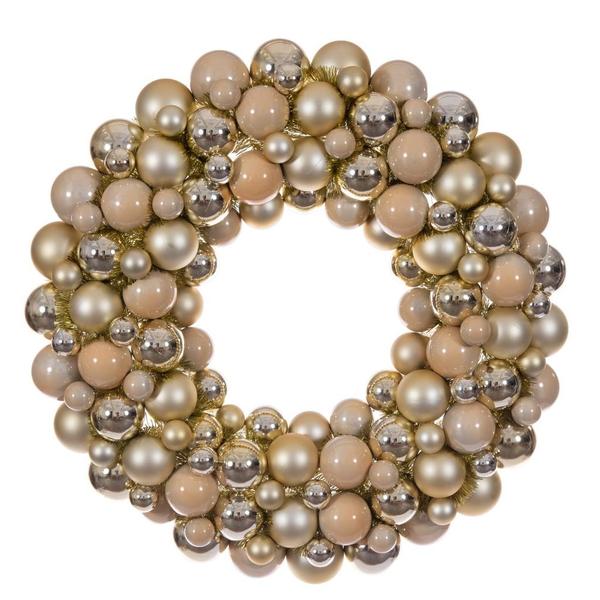 Vickerman 787267 - 28" Champagne Mat Shn Prl Ball Wreath UV (N250938UV) Christmas Wreath Ornament