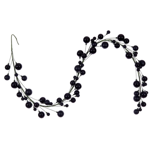 Vickerman 786499 - 6' Black Matt Shiny Prl Ball Garlnd 1-2" (N250117) Christmas Garland Ornament
