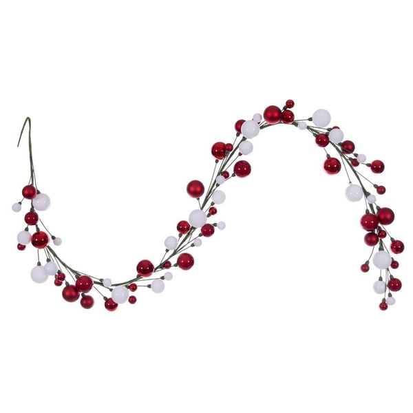 Vickerman 786697 - 6' Red/White Mt Shn Prl Ball Garlnd 1-2" (N250191) Christmas Garland Ornament