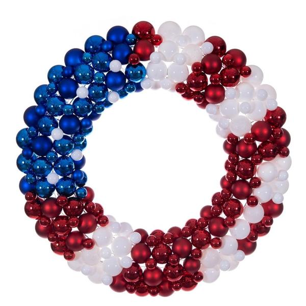 Vickerman 787663 - 36" Red/White/Blue Mat Shn Glt Wreath UV (N253036UV) Christmas Wreath Ornament