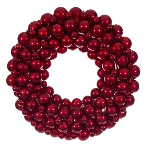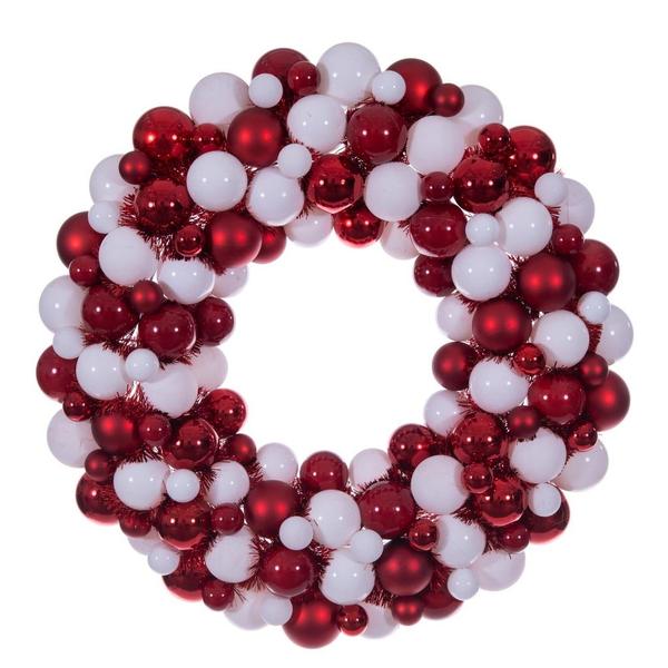 Vickerman 787281 - 28" Red/White Mat Shn Prl Ball Wreath UV (N250991UV) Christmas Wreath Ornament