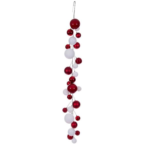 Vickerman 787090 - 6' Red/White Mat Sh Prl Ball Garlnd 4-6" (N250591) Christmas Garland Ornament