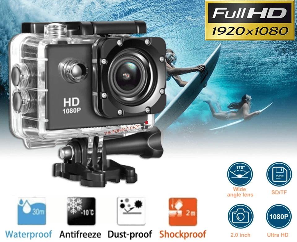 HD Action Sport Waterproof Camera, 20MP Camcorder Video Recorder With LCD, Diving Case & Accessories black