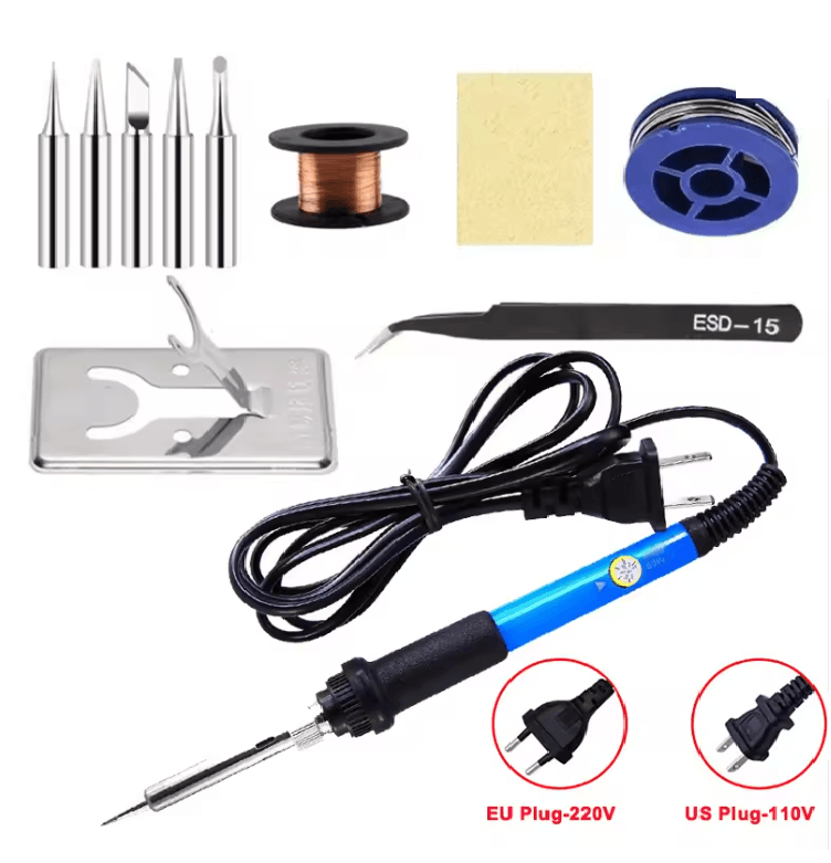 Adjustable Temperature Electric Soldering Iron 60W For Precise Repair And Welding Work 7 In 1 Blue Eu