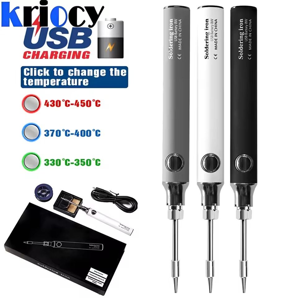 Rechargeable Cordless Soldering Iron Pen With Adjustable Temperature USB Powered Kit gray