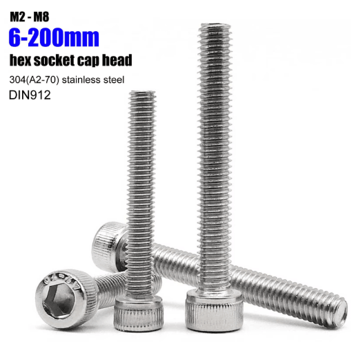 Ultra Long 304 Stainless Steel Hex Socket Cap Screws DIN912 A2 70 Allen Bolts (M2M8, Up To 200mm) 80mm 10pcs M4