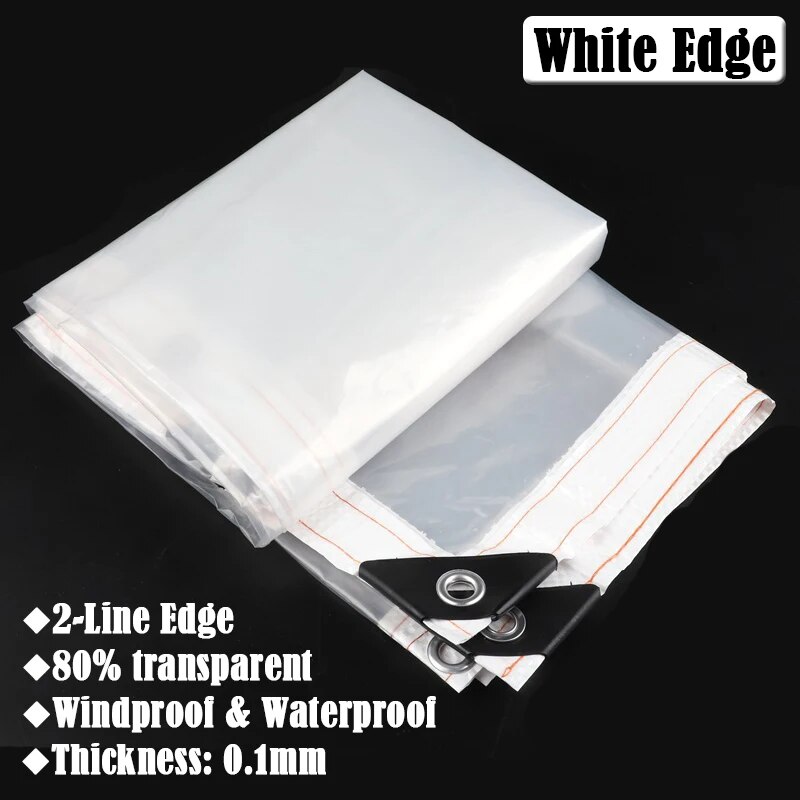 0.1mm Transparent Tarpaulin For Outdoor Gazebo, Pergola, Window | Windproof & Waterproof Garden Awning Canvas 1x1m White Edge