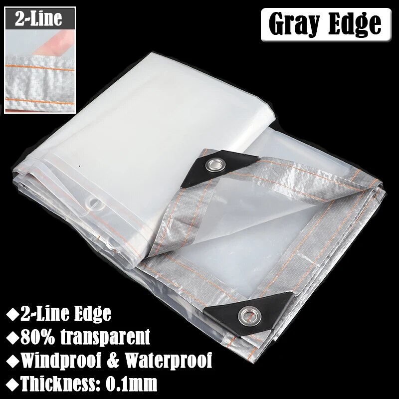 0.1mm Transparent Tarpaulin For Outdoor Gazebo, Pergola, Window | Windproof & Waterproof Garden Awning Canvas 1x1m Gray Edge