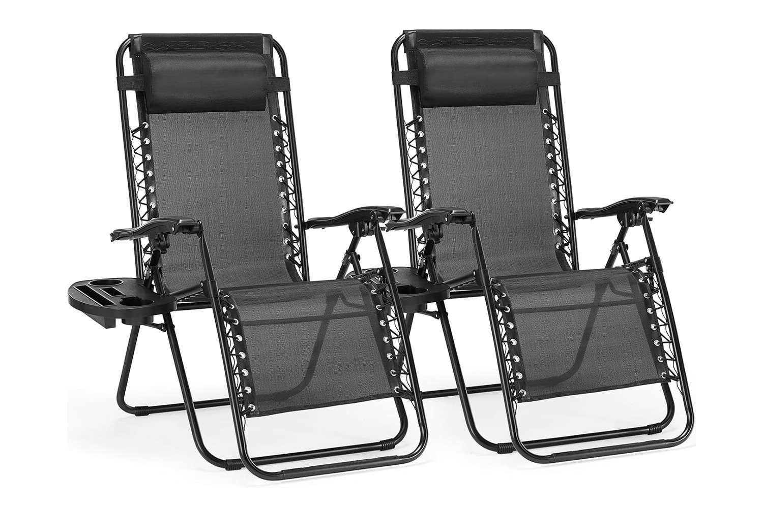 ZenLounge Zero Gravity Recliner Set 2 Pack Outdoor Lounge Chairs With Cup Holders & Adjustable Headrests black