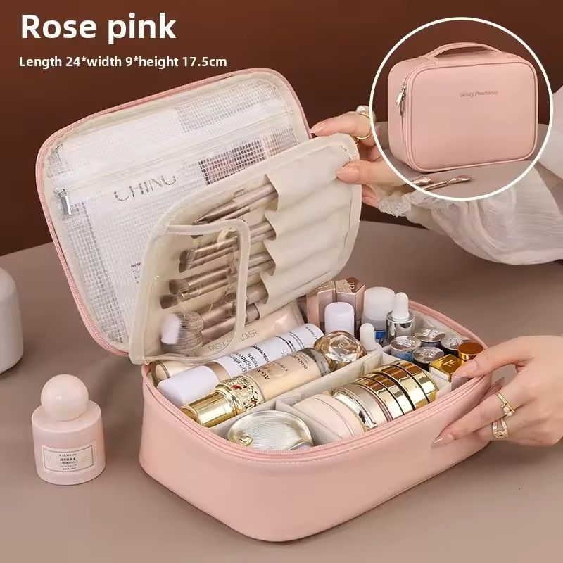 Large Capacity Travel Makeup Bag For Women Portable Toiletry Organizer Pouch pink