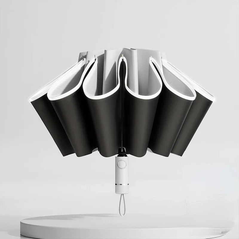 Men & Women Fully Automatic Reverse Folding Umbrella Windproof With Reflective Stripe & UV Protection grey