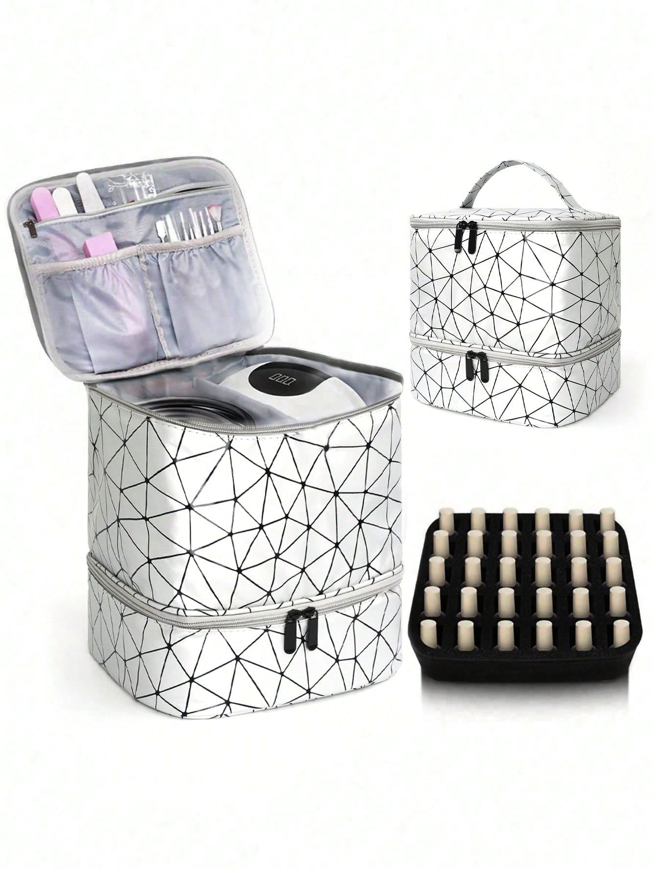 Double Layer Nail Polish Storage Bag With 30 Compartments, Portable Essential Oil Organizer Cosmetic Nail Care Kit Box grey