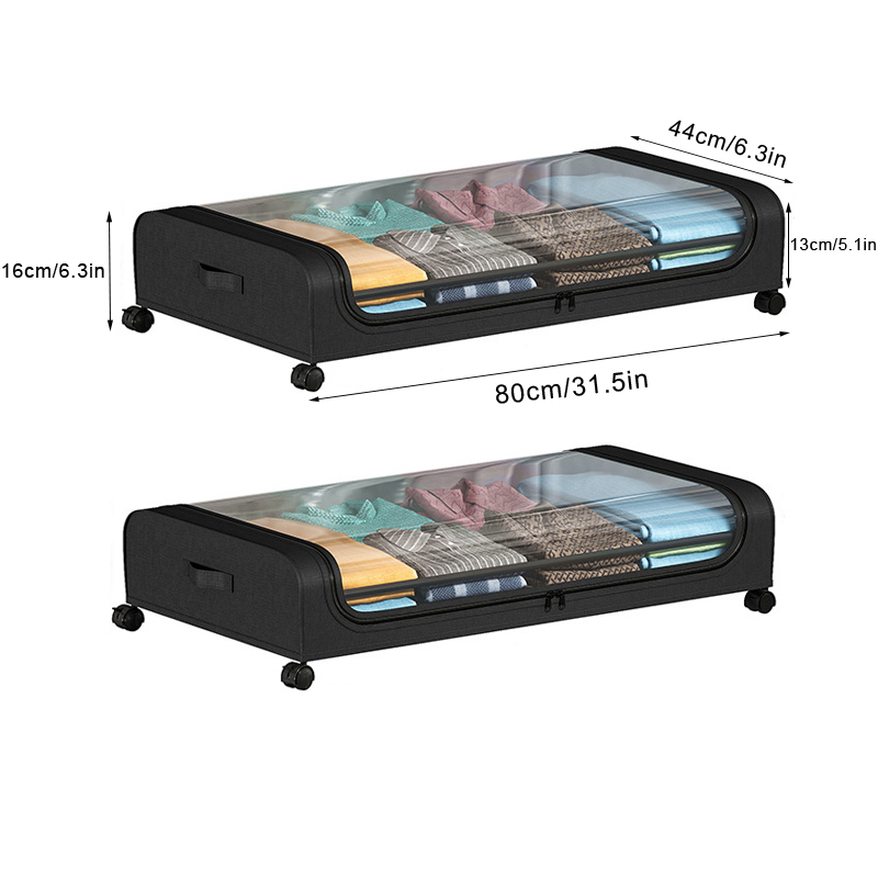Under Bed Storage Box With Wheels, Large Capacity Dust Proof Quilt Clothes Storage Bag For Bedroom, Organizing Storage black 2pcs