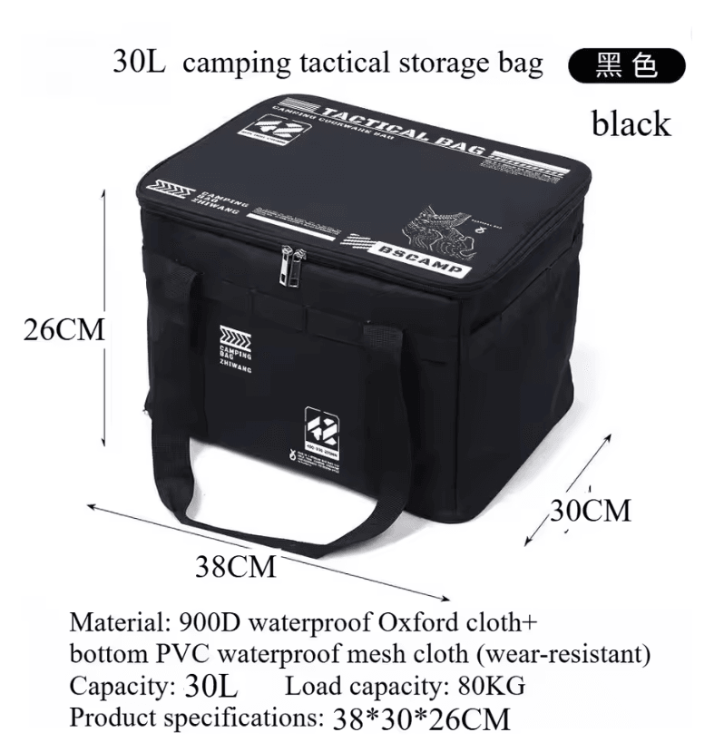 Outdoor Foldable Waterproof Storage Box Large Capacity Portable Gear Organizer black. 30l