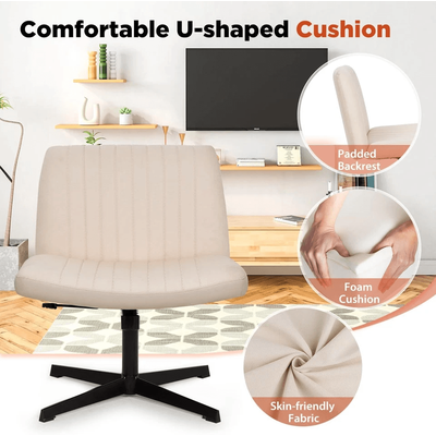 Criss Cross Armless Office Chair No Wheels, Modern Swivel, Height Adjustable, Wide Seat For Cross Legged Sitting Criss Cross Armless Office Chair No Wheels, Modern Swivel, Height Adjustable, Wide Seat For Cross Legged Sitting