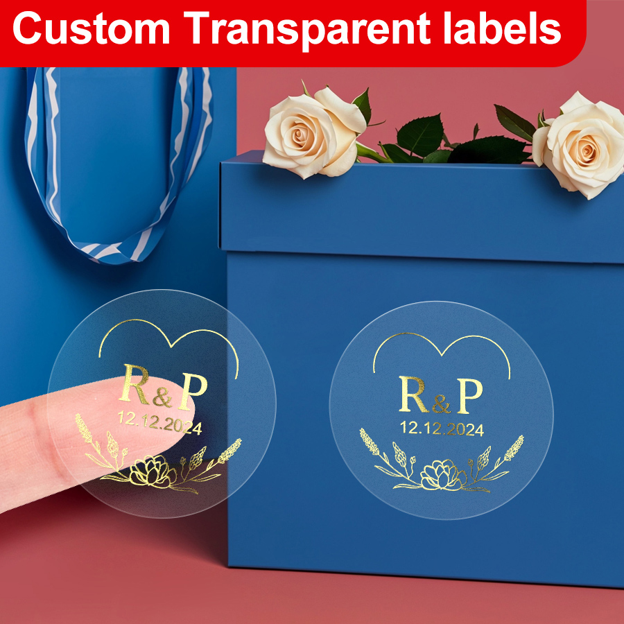 Gold Custom Transparent Wedding Seals, Waterproof Stickers For Gifts, Invitations, Modern Party Decor style C 24pcs 4cm 15.7in