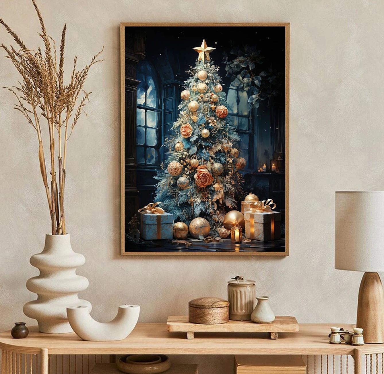 Classic Traditional Christmas Wall Art | Santa Claus & Tree Gift Poster Canvas Painting 20 40 X 50 Cm