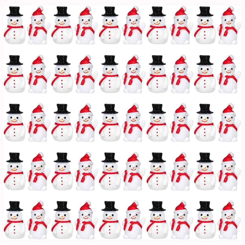 Mini Snowman Figurines Set Christmas Resin Garden Decor Accessories 10 Pcs