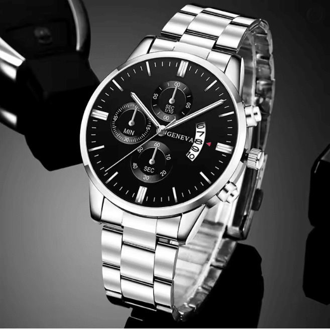 Silver Stainless Steel Luxury Quartz Watch silver Black